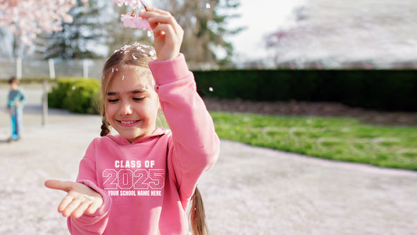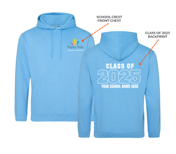 Customize your hoody with your school crest in the front and your Class of 2025 print & signatures on the back.