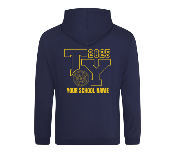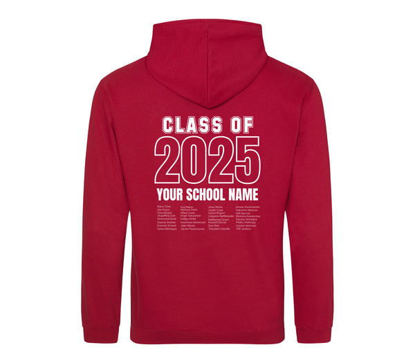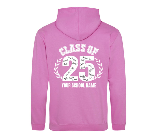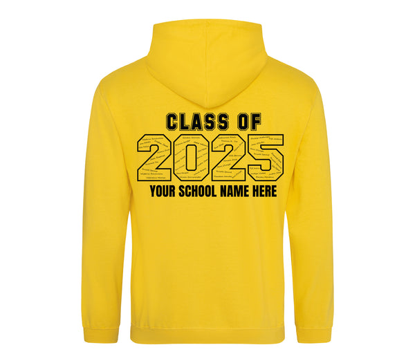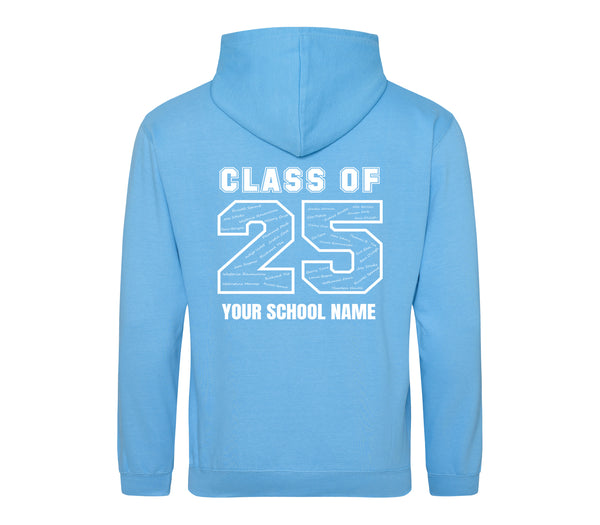 Customize your hoody with your school crest in the front and your Class of 2025 print & signatures on the back.